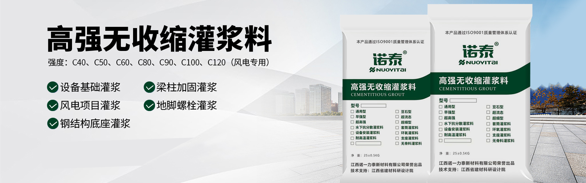 江西諾一力泰新材料有限公司位于江西宜春奉新縣,是專業從事灌漿料、水泥路面修補砂漿抗裂砂漿防水砂漿、保溫砂漿、隔聲砂漿、粘結砂漿等砂漿系列產品生產銷售的廠家。
